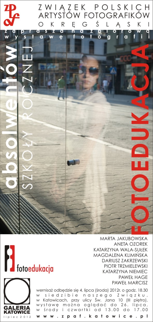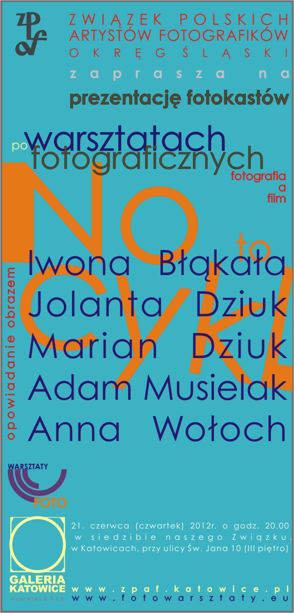 Związek Polskich Artystów Fotografików Okręg Śląski serdecznie zaprasza 07 XI 2012 o godz 18,30 na wystawę studentów Pracowni Działań Interdyscyplinarnych & Pracowni Interpretacji Literatury