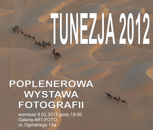 Związek Polskich Artystów Fotografików Okręg Śląski serdecznie zaprasza 08 II 2013 o godz 18,00 na wernisaż poplenerowej wystawy fotografii: „Tunezja 2012”.